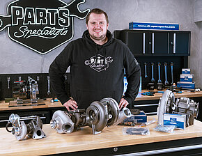 Il turbocompressore è costituito da due aree principali: il lato di scarico e il lato del compressore. Sul lato di scarico, i gas di scarico caldi del motore azionano la girante della turbina, che è collegata alla girante del compressore tramite un albero. Sul lato del compressore, viene aspirata aria fresca, che poi viene compressa e immessa nel motore. Durante il funzionamento, il turbocompressore raggiungere velocità di oltre 100.000 giri al minuto con una pressione di sovralimentazione compresa tra 1 e 2 bar. Il Parts Specialist Kevin aggiunge un'indicazione importante: "Una valvola wastegate regola i gas di scarico in eccesso per prevenire il sovraccarico. L'alloggiamento della valvola wastegate è impostato in fabbrica e non deve essere modificato!"