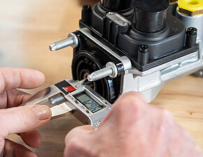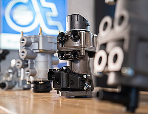La valvola del freno a pedale svolge una funzione centrale nell'impianto frenante pneumatico. Ha diversi collegamenti per gli ingressi e le uscite di pressione, che sono utilizzate per controllare in modo preciso la forza frenante. "Una funzione importante è la funzione di frenata anticipata, che assicura che il rimorchio venga frenato leggermente in anticipo per garantire una frenata complessiva stabile", spiega Niklas. Oltre ai compiti pneumatici, la valvola svolge anche funzioni elettriche. Si può utilizzare un oscilloscopio per leggere la corsa del pedale, mentre un multimetro mostra la tensione in uscita corrispondente alla posizione del pedale. Inoltre, il sistema disattiva il sistema di controllo della velocità durante la frenata e attiva il circuito delle luci di frenata.